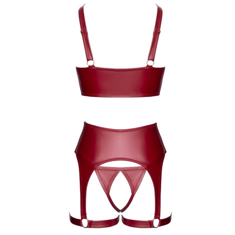 Souprava bez rozkroku s podprsenkou s policemi, tangami a podvazkovým pásem