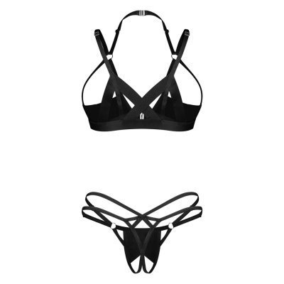 Podprsenka s otevřenými košíčky a string bez rozkroku v sadě